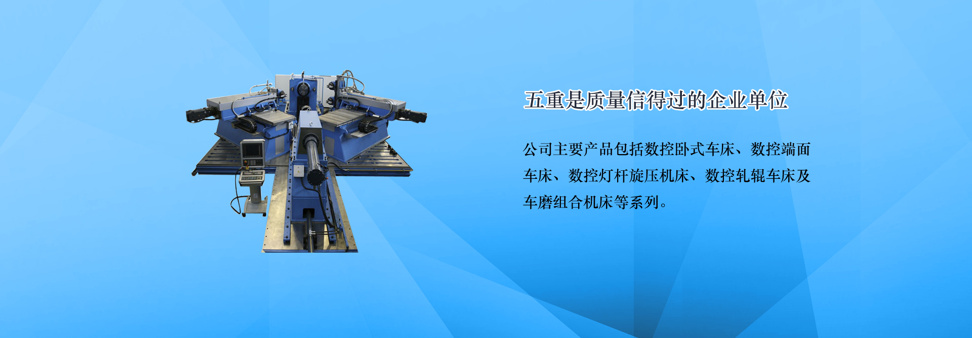 青島五重?cái)?shù)控機(jī)床有限公司(原青島第五重型機(jī)械廠)是一家集科研,生產(chǎn),銷售為一體的數(shù)控機(jī)床生產(chǎn)企業(yè),主要產(chǎn)品:端面車床,數(shù)控端面車床,車銑復(fù)合機(jī)床,車磨組合機(jī)床,膠輥磨床,地磅遙控器,數(shù)控旋壓機(jī)。連續(xù)多年被評(píng)為青島市信用企業(yè)、質(zhì)量信得過(guò)單位。公司位于青島國(guó)際中小企業(yè)工業(yè)園,地理位置優(yōu)越,距流亭飛機(jī)場(chǎng)僅10公里,濟(jì)青、榮烏、青威等多條高速公路經(jīng)過(guò),交通十分便利。... [MORE + ]